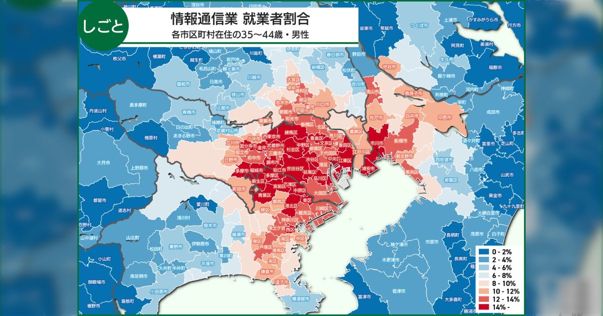 ITエンジニアは首都圏に集中していると言われており、実際全就業者の6割が一都三県に住んでいると言われています。